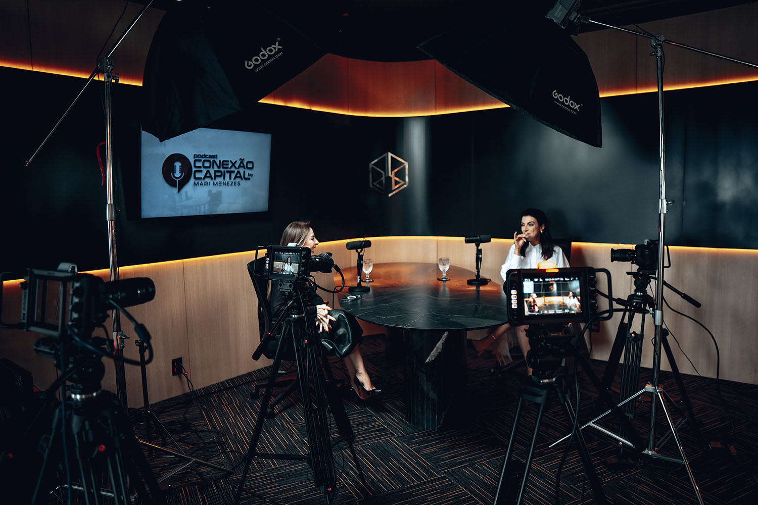 Estúdios prontos, estilosos e equipados. É só chegar e gravar.